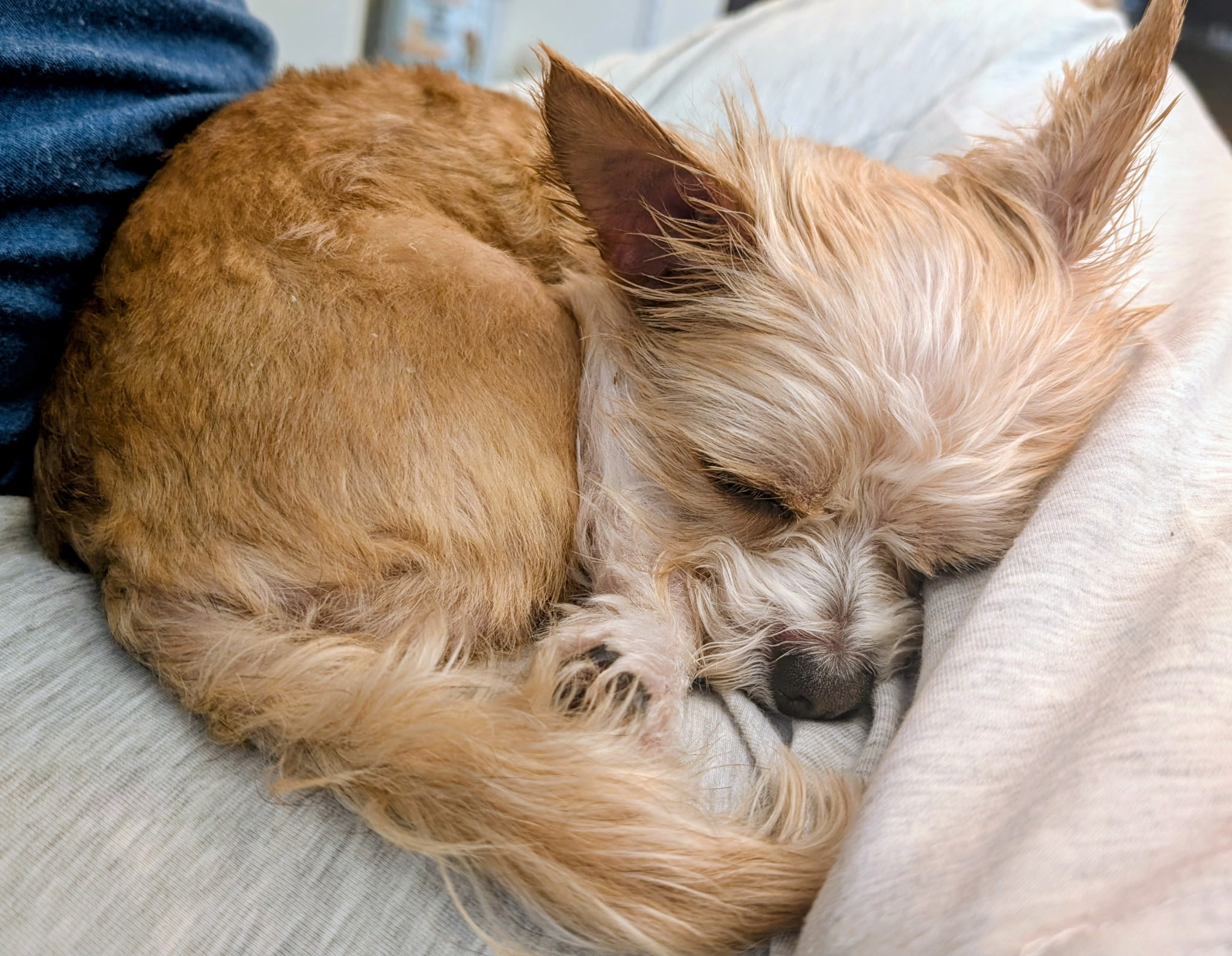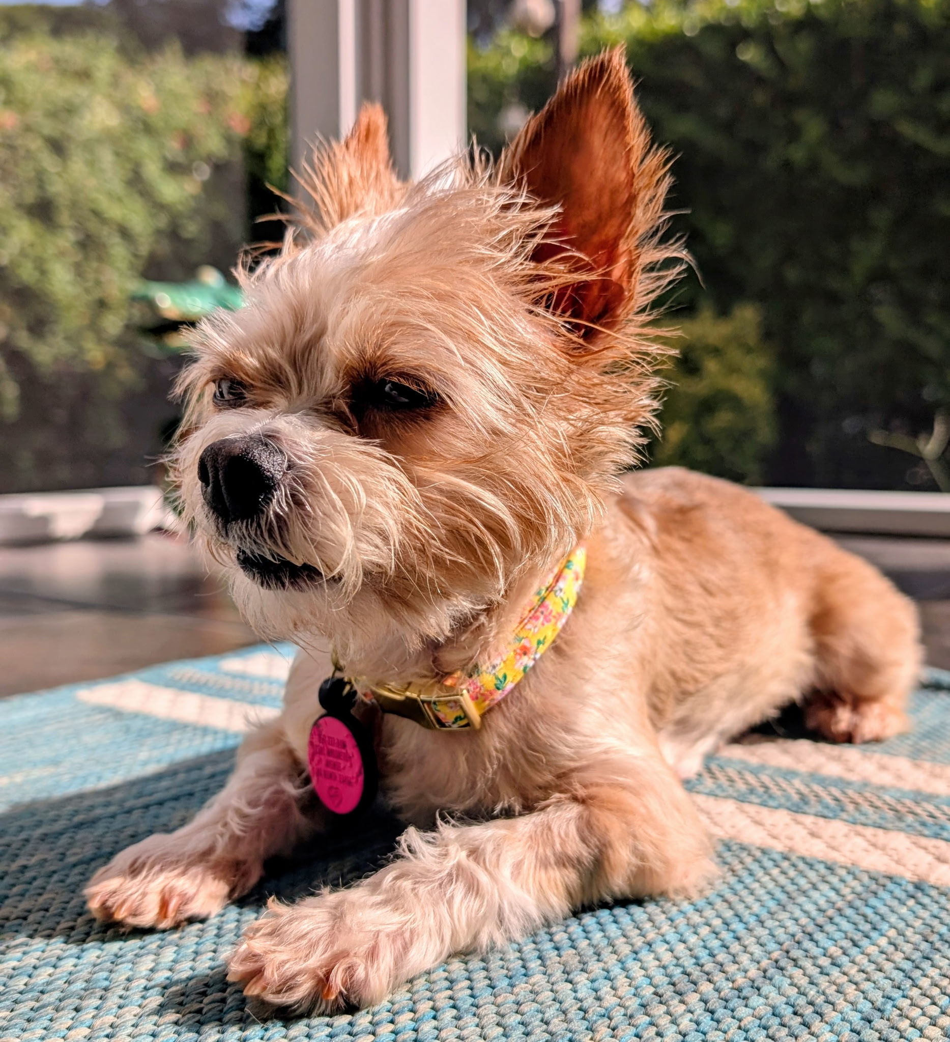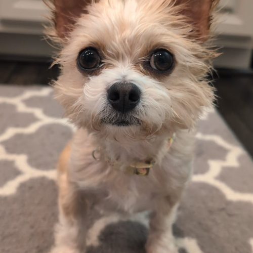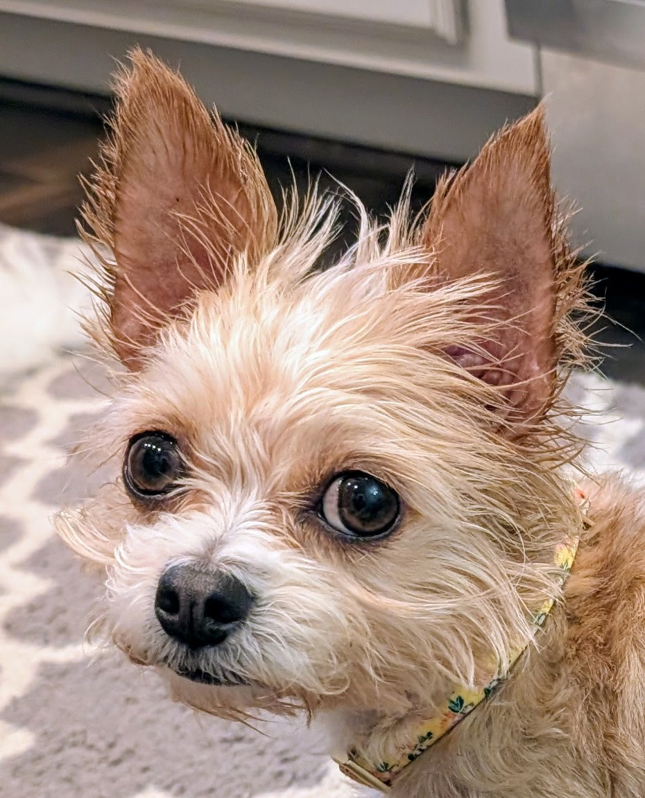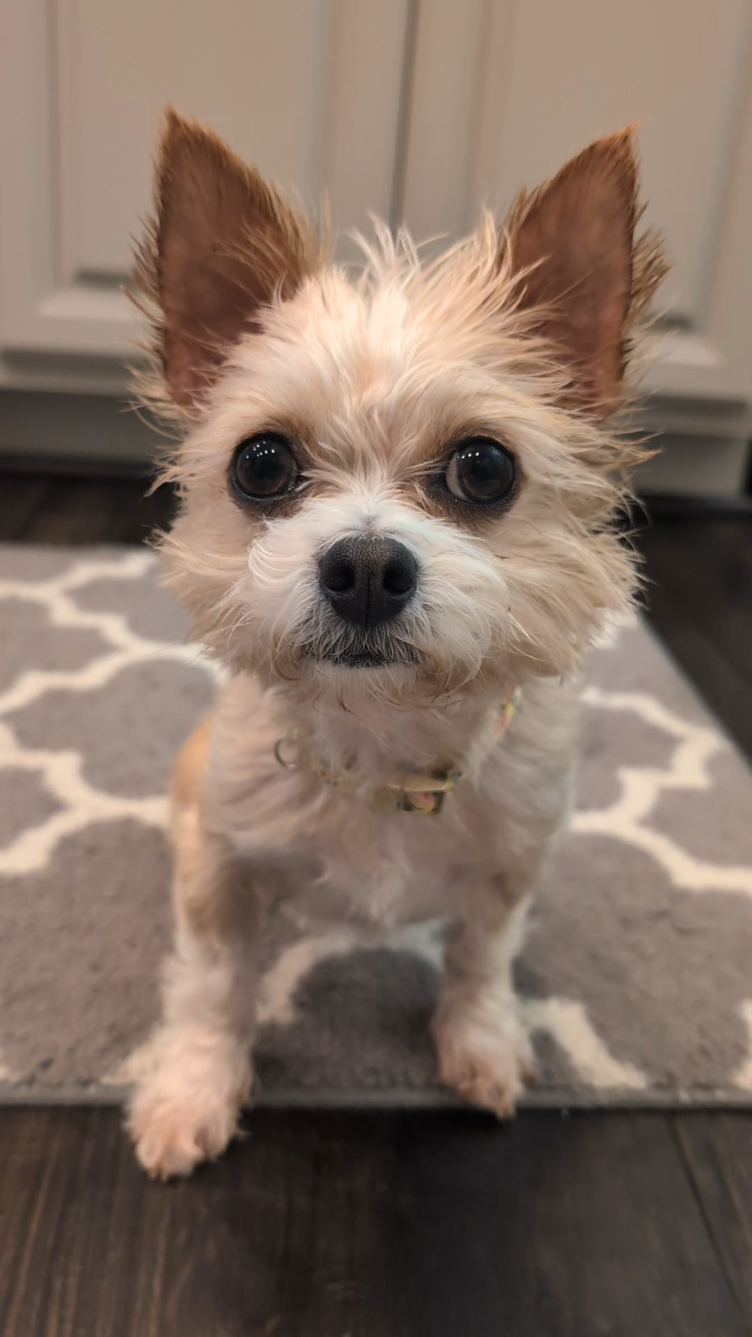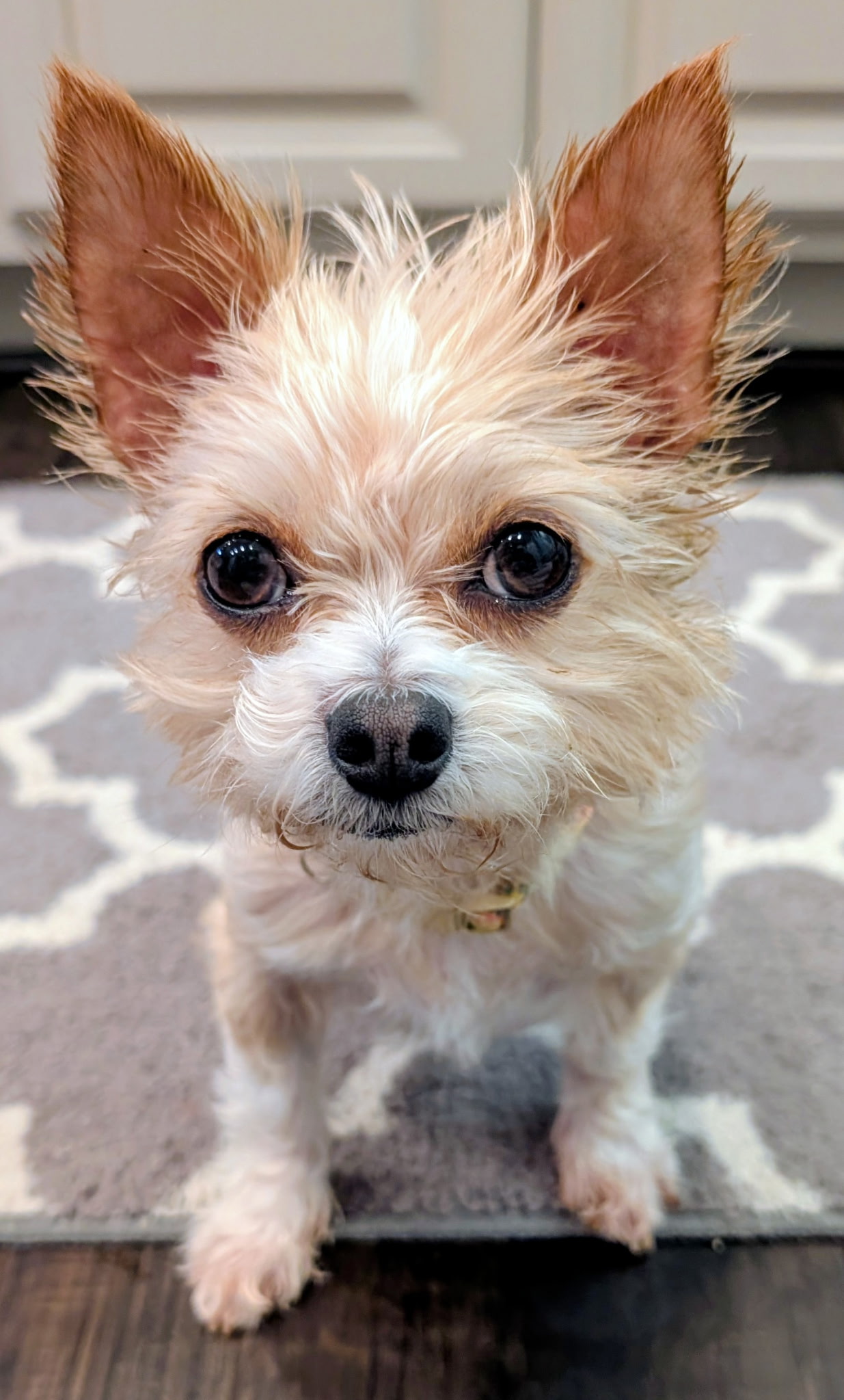At just 1 1/2 years old and 7 pounds, Dolly may be small, but she’ll steal your heart in an instant. Rescued from a shelter in Suffolk, Virginia, Dolly has proven herself to be resilient and affectionate. Little Dolly is happy, smart, and easy to motivate with food. Overall, she has shown good potty manners (though we never guarantee a dog is fully potty trained). She enjoys walks around the neighborhood (the more, the better!), snoozing in sunny spots, and playing with her favorite stuffed toys. She also has impressive jumping skills that allow her to scale furniture like a tiny kangaroo. Whether she’s flipped over for a belly rub or following you around to supervise your activities, Dolly balances independence with affection in the sweetest way. She would love a canine companion to play with