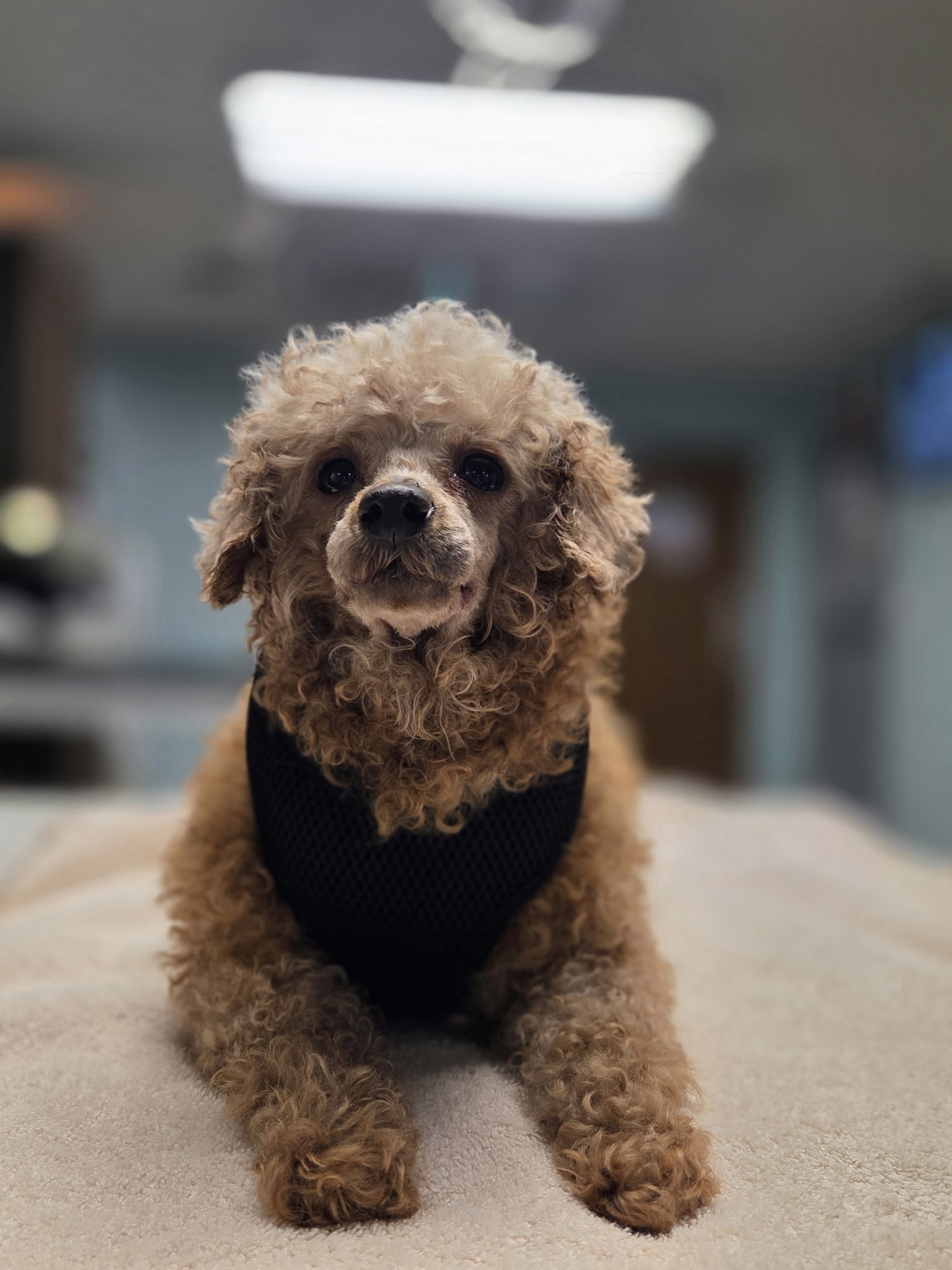 Ethel is new in rescue. She is an 8 year old, 10 pound miniature poodle. She (and Lucy) comes to us from a Pennsylvania puppy mill. Ethel is very sweet but a little shy at first. She depends on other dogs and we think she would like another gentle dog in the home. Her tail wags constantly and she has recently begun to give kisses to her foster mom.