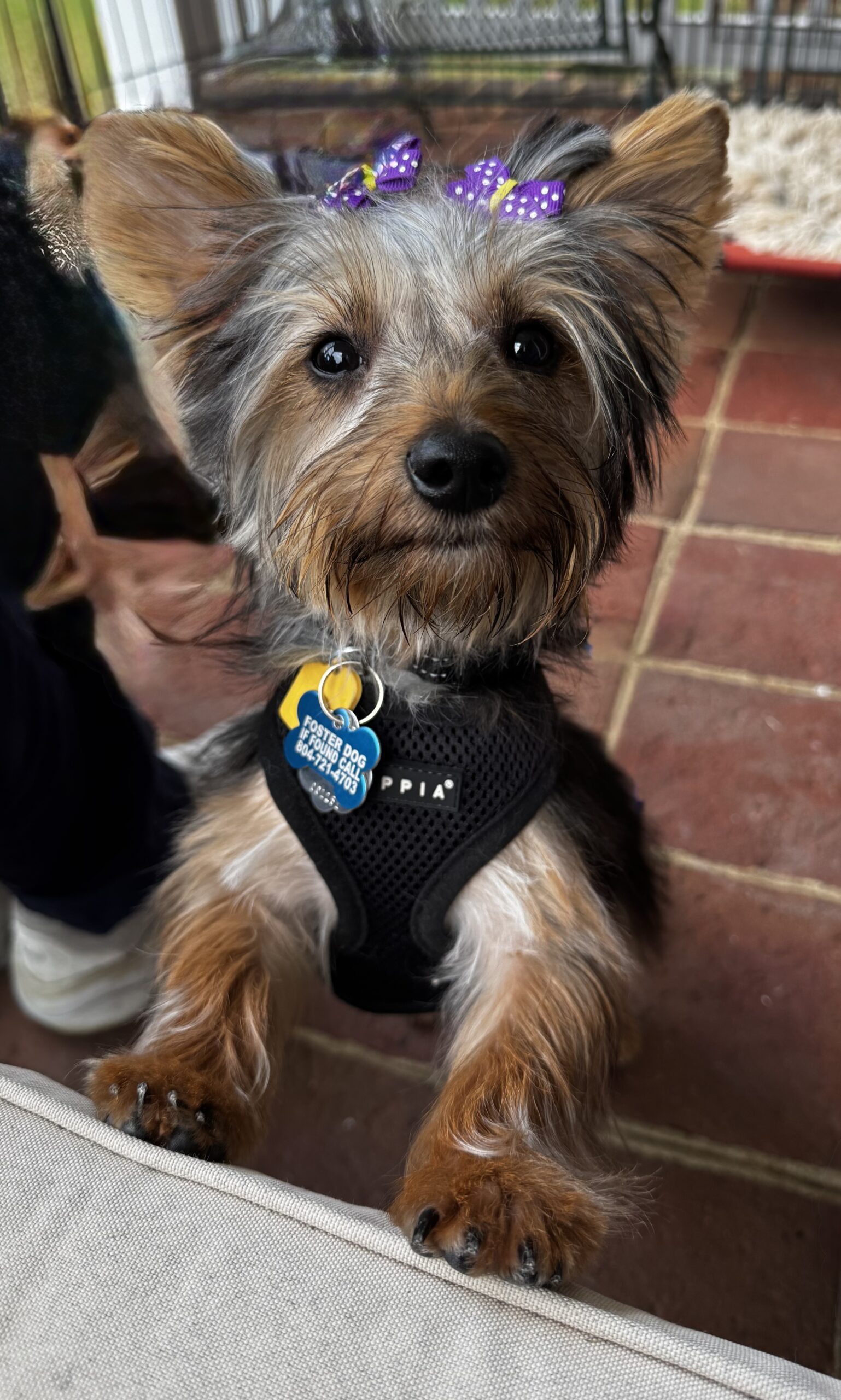 Meet Flopsy! She is a sweet little 7.5-8 lbs, 6 month old Yorkie mix. She comes to us as an owner surrender. The ‘backyard breeder’ said she wanted to surrender her because people were not ‘buying’ females. Sadly, these ‘breeders’ only saw her as a commodity! We see her as a sweet little girl who deserves the best!