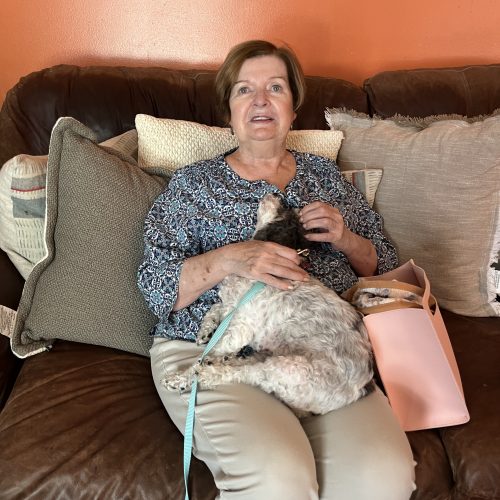 Georgine was spotted in the shelter looking completely disheveled. She was a stray awaiting her stray hold. When she was not claimed we scooped her up immediately. This poor little lady has been through the ringer and back. She was completely shaved down at the shelter due to severe matting and an infestation of fleas. Once shaved the shelter found a severely malnourished dog with several mammary tumors and some fatty tumors as well. After cleaning off her face and shaving it down they found cataracts and a subluxated lens as well. Through no fault of her own this girl has definitely seen better days.