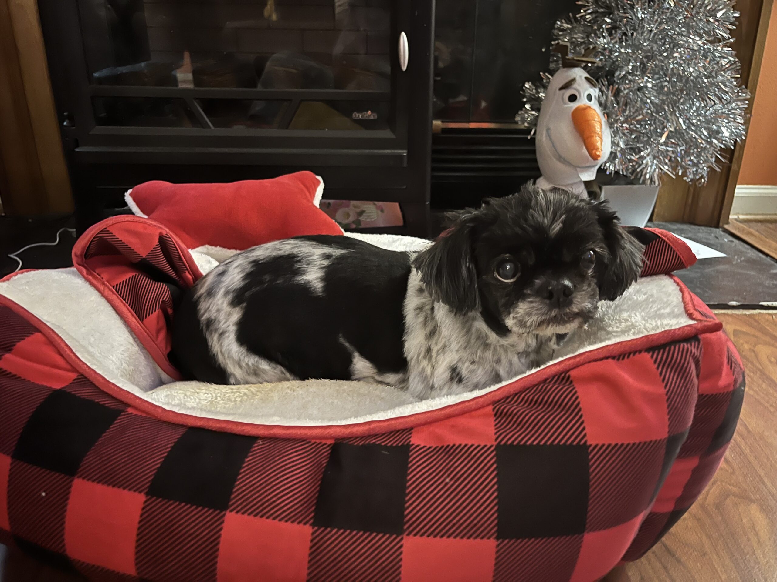 Gizmo is fully housetrained, eats well, and sleeps peacefully through the night. He is a true companion at heart and prefers to sleep close to his person, soaking up every moment of togetherness. He gets along wonderfully with his foster siblings (a Yorkie and a Poodle) and even shares his space nicely with a rabbit. Because of his size and gentle temperament, we recommend a home with children ages 6 and up. Gizmo can be a little protective of his food and water bowls around other dogs and may give a warning growl, but he has never shown any biting behavior.