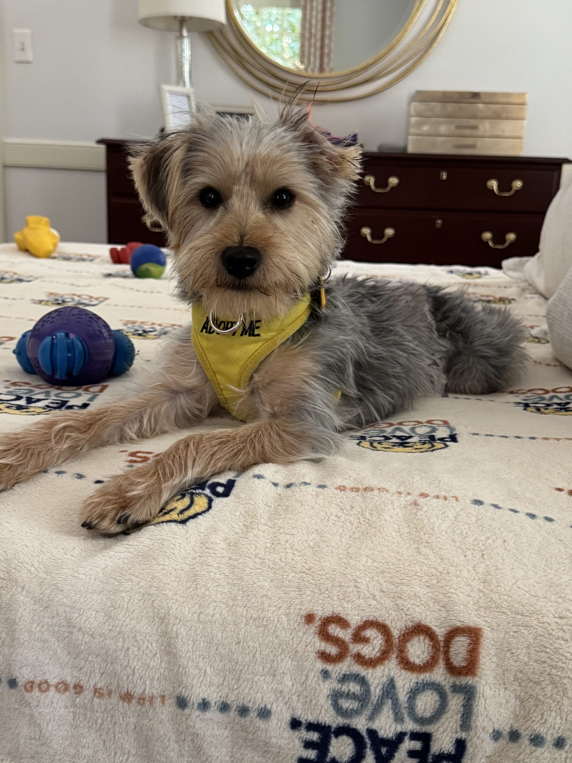 Jameson is a 10 pound, 5 month old terrier mix (we were told Morkie but he’s taller than a typical Morkie). He is fully vetted, microchipped, neutered and ready for adoption. He is an active boy who deserves the best!