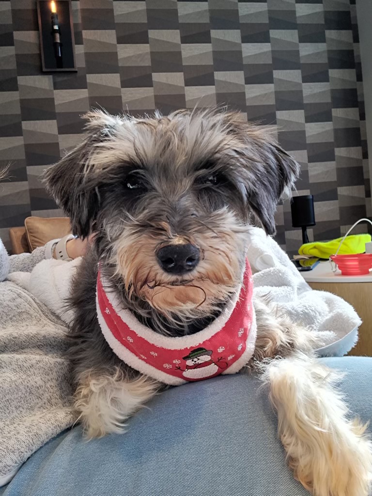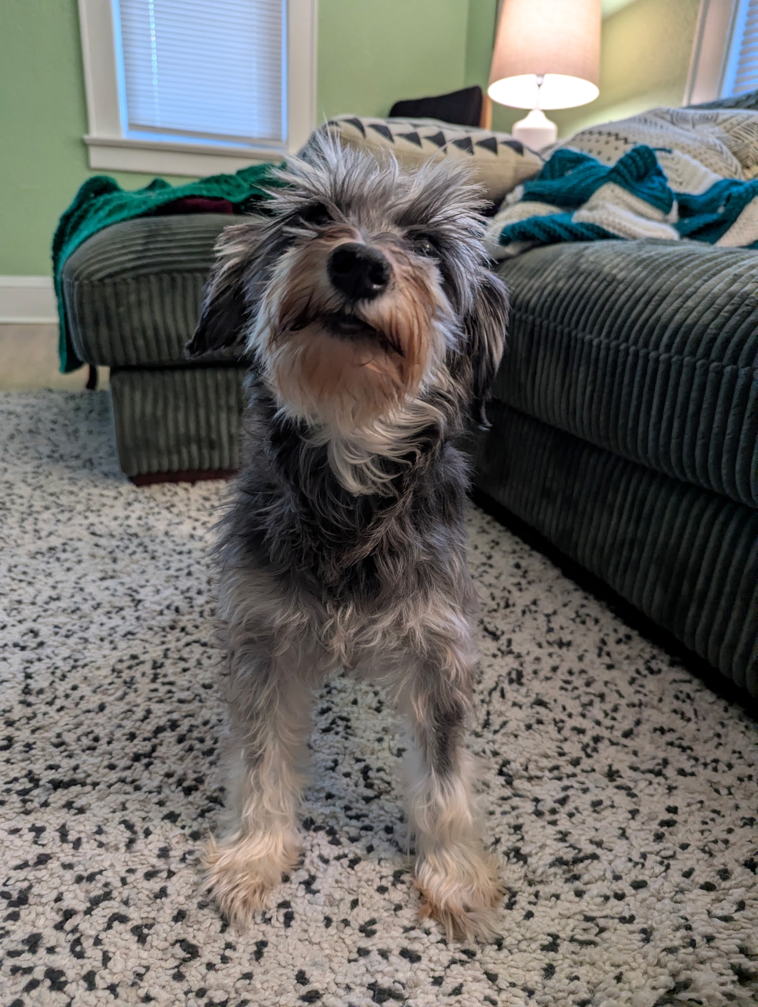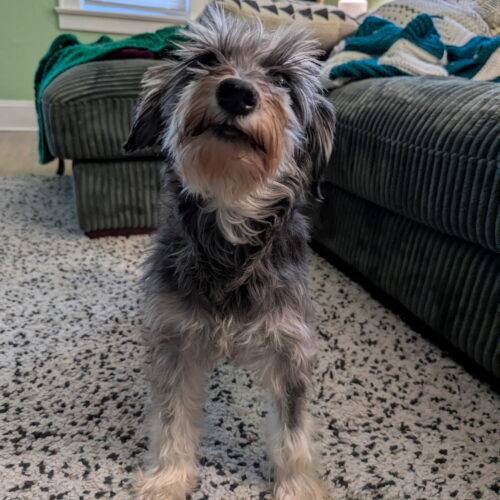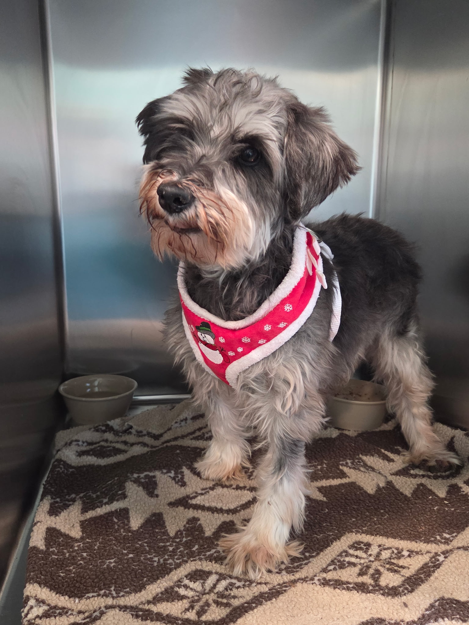 Sweet June Bug the Miniature Schnauzer comes to us from a Pennsylvania puppy mill. She is 6.5 years old and weighs 16 pounds.