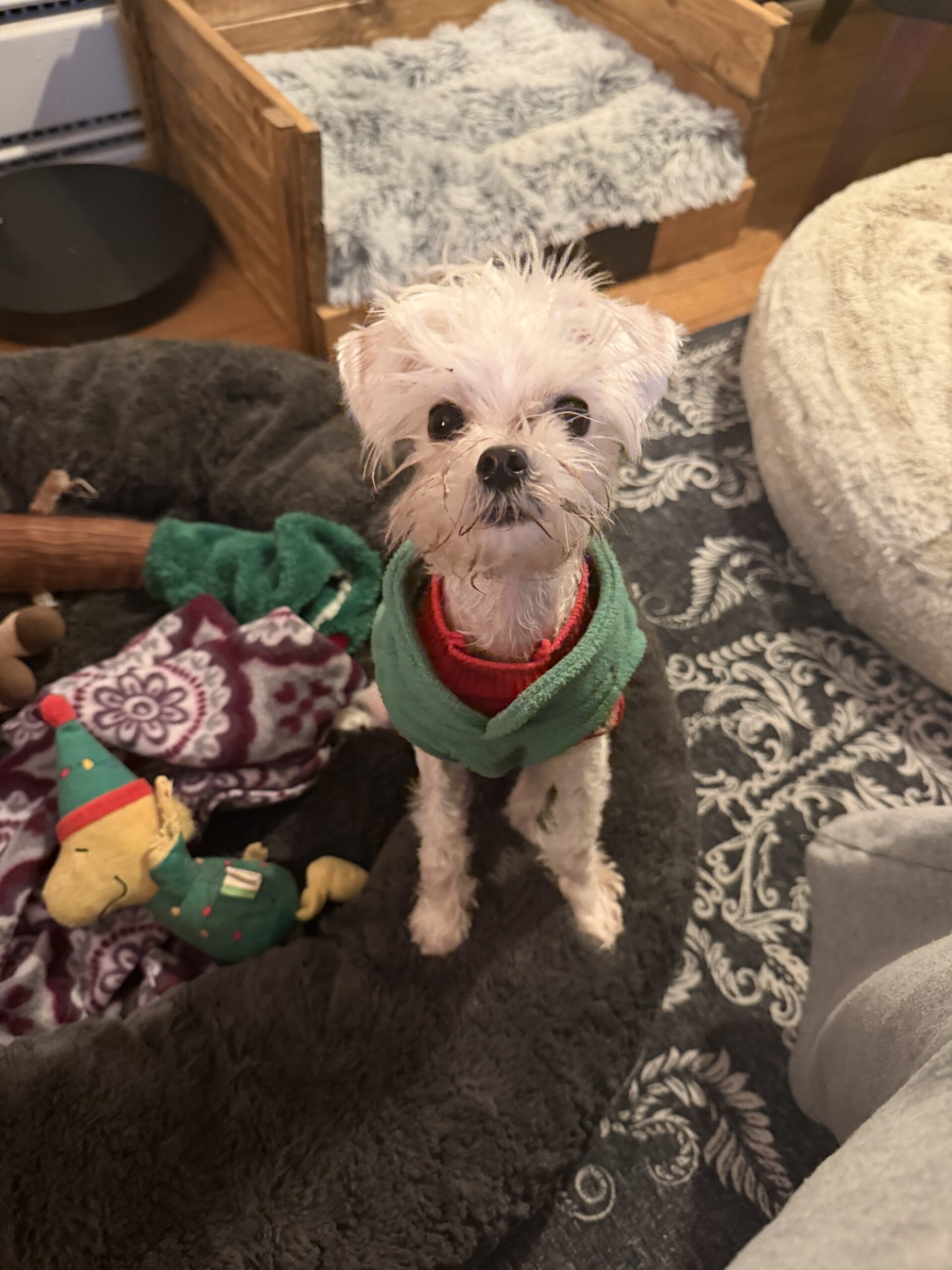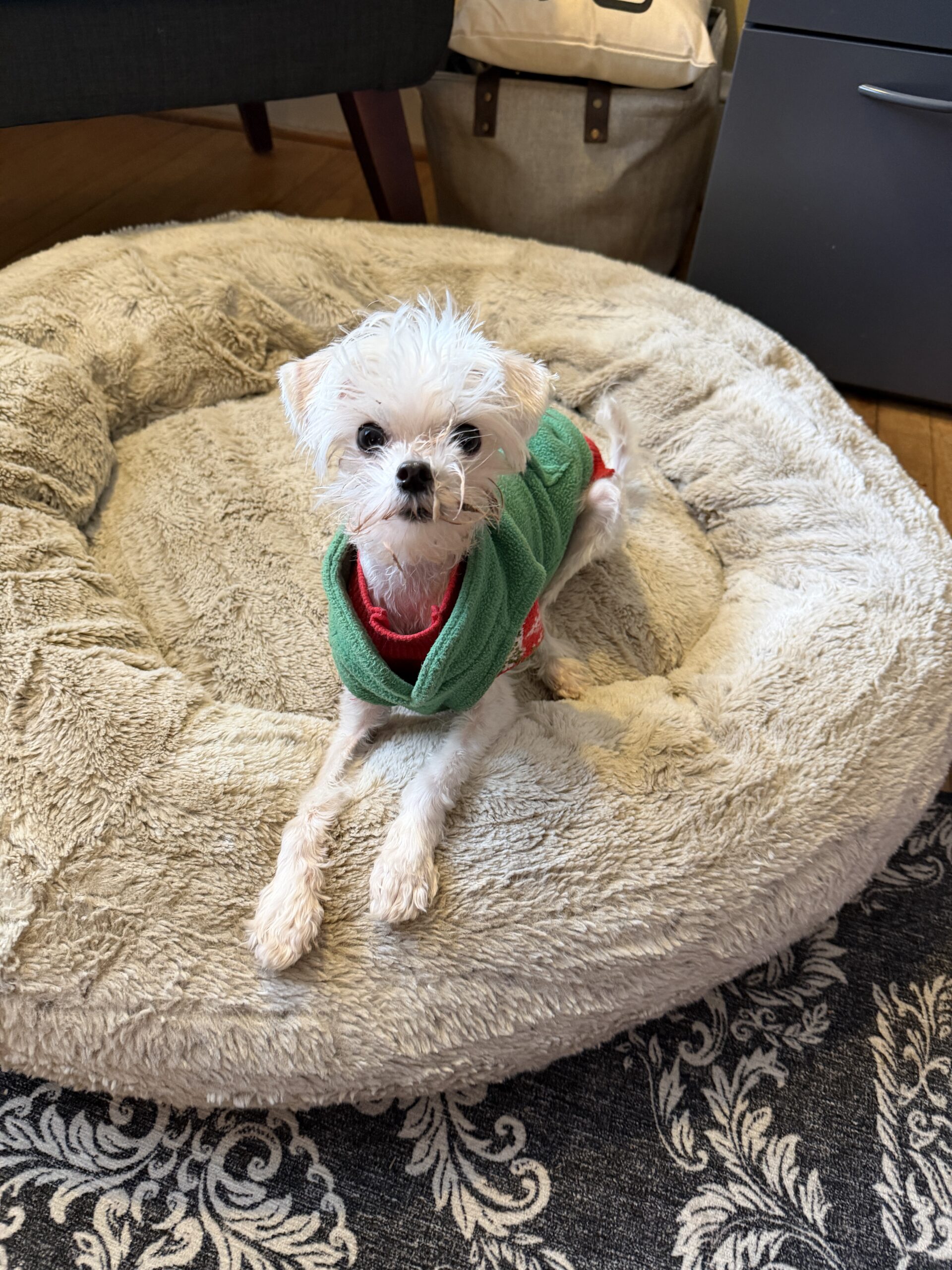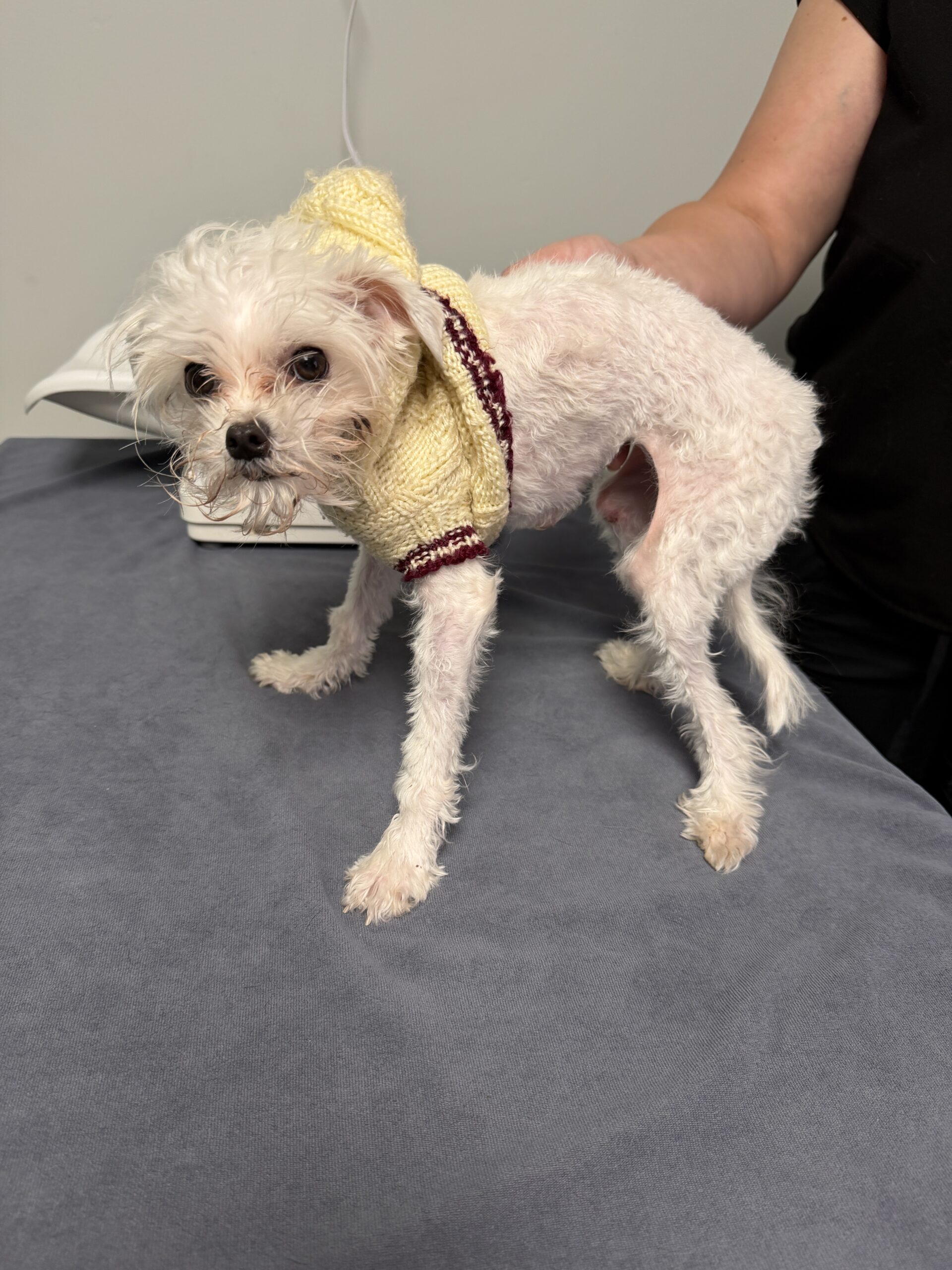 Lee Lee is very new to the rescue. She is a 4 pound, 6 month old Maltese (mix). She comes to us from a shelter in Delaware. She has a deformity in her hind limbs and will see the surgeon next week to evaluate her. We are hopeful it can be corrected. We will know more next week. She is a happy little girl who loves everyone. Despite her orthopedic issues she is playful and gets around well.