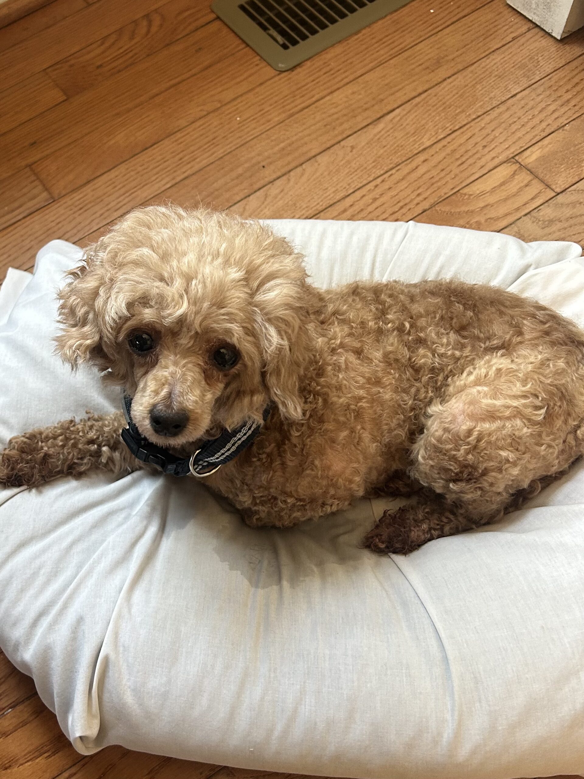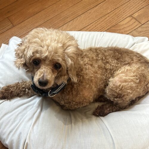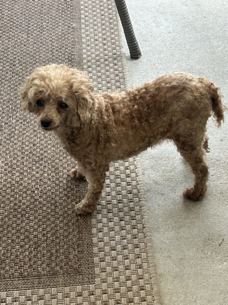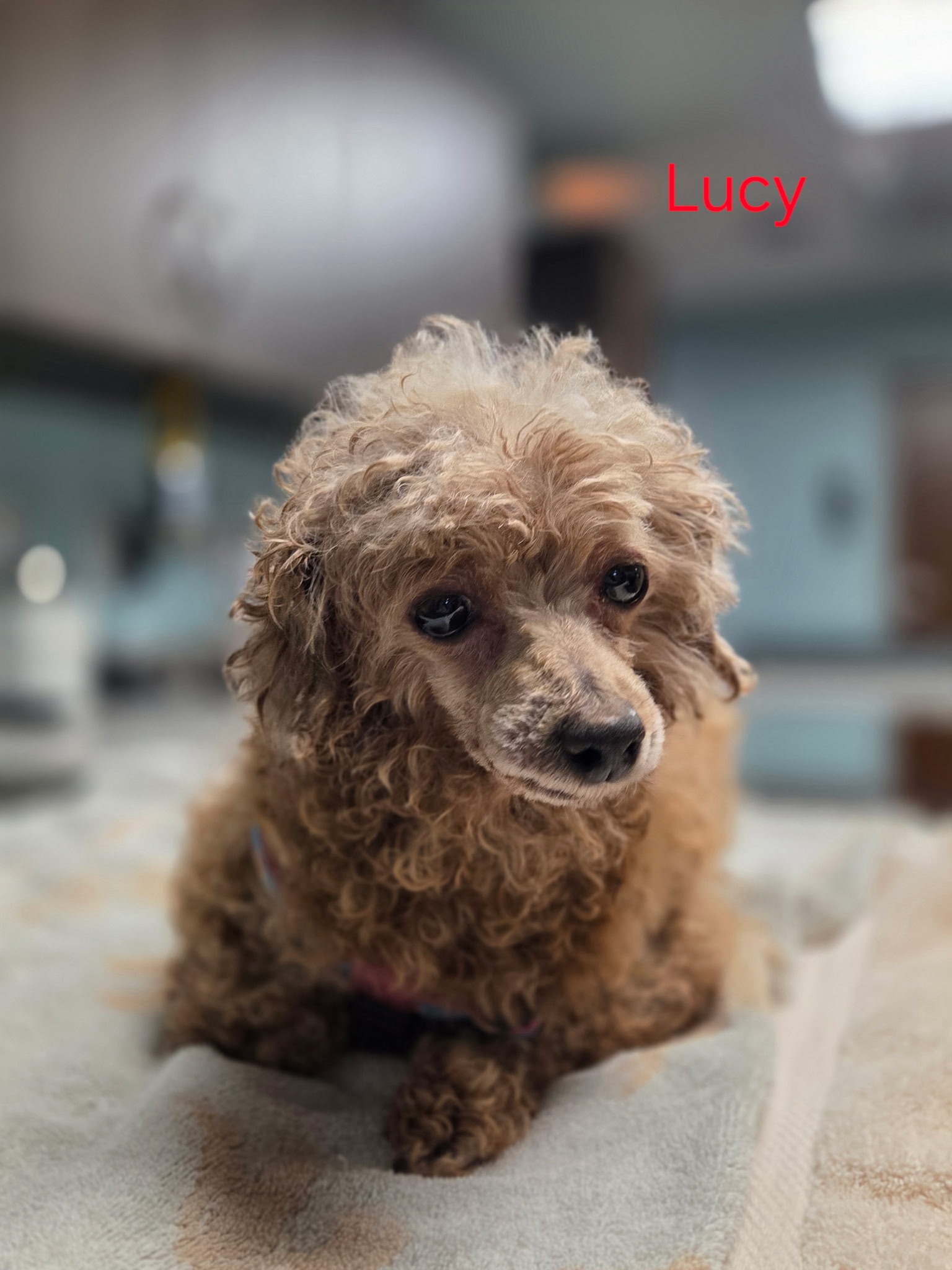 Lucy is new in rescue. She is an 8 year old, 10 pound miniature poodle. She comes to us from a Pennsylvania puppy mill. Lucy is very sweet. Her tail wags constantly and she has recently begun to give kisses to her foster mom.