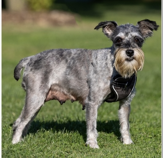 Reese is from a puppy mill in Pennsylvania. She is a 4 (almost 5) year old, 14 pound Miniature Schnauzer. She just arrived on Friday, November 7th so we are just learning her personality. So far she is hanging out with the resident female schnauzer and getting used to life as a pet. As with the other puppy mill dogs in our care, she also needs a dental. She will see the vet soon to schedule the dental cleaning and spay surgery. You can see from her profile photos she was only valued for her puppy making skills and all other care took a back seat. Well, that all changes today!