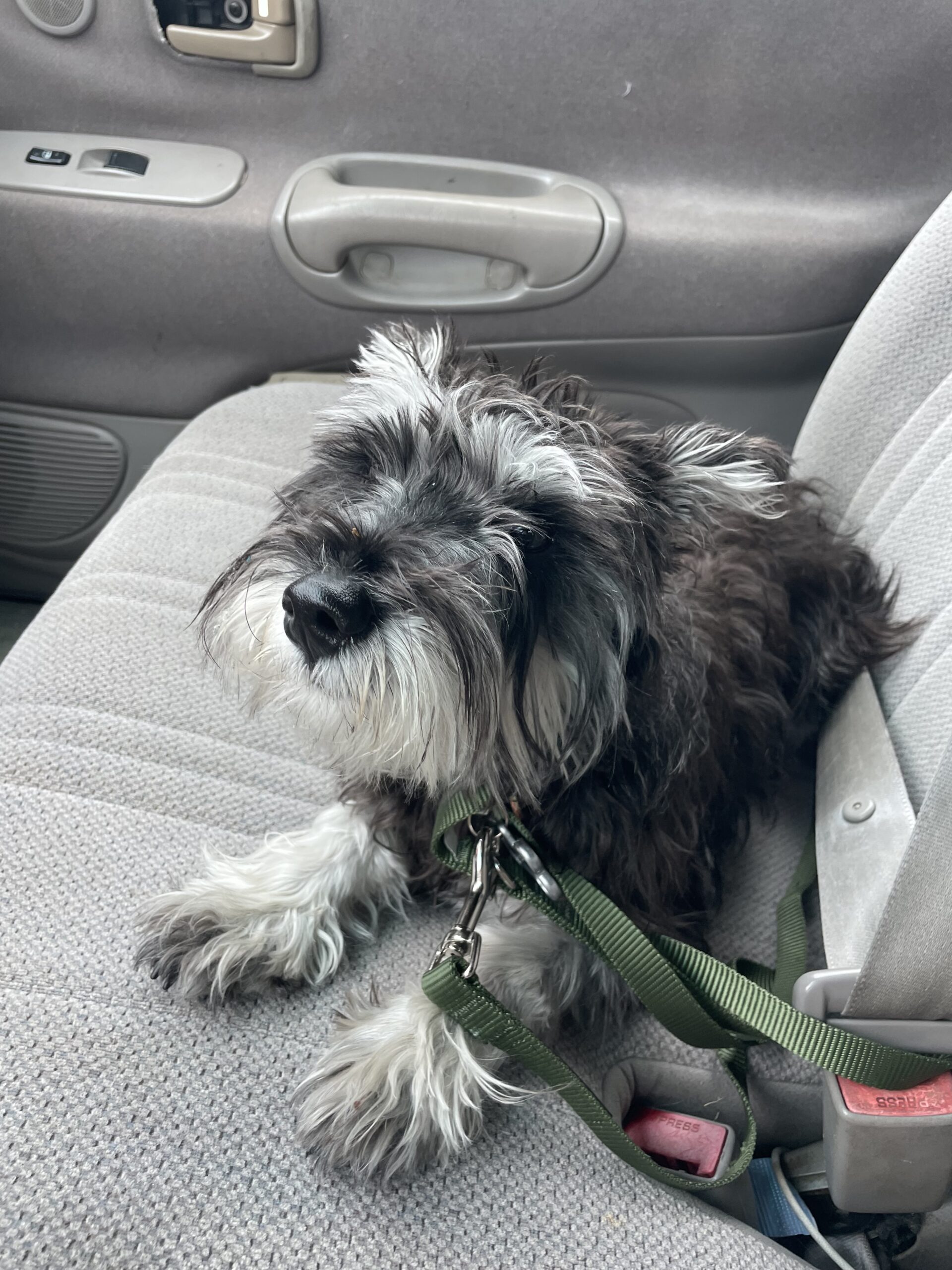 Scotland is new to the Rescue. She is a 9 month old purebred miniature schnauzer. She was an owner surrender due to divorce. She just arrived and we are learning her personality. We do know she has lived with school aged children, is respectful of the resident dogs in the Foster home, and working on her potty manners. She can be a little barky but overall she is a very sweet girl. She does have a lot of puppy energy! She will need an active household. She has also been noted to have some anxiety. She will be best served in a home with another dog and/or someone home during the day. She will also require manners training within 6 months of adoption to finalize her adoption. A fenced yard will be required for her adoption as well.