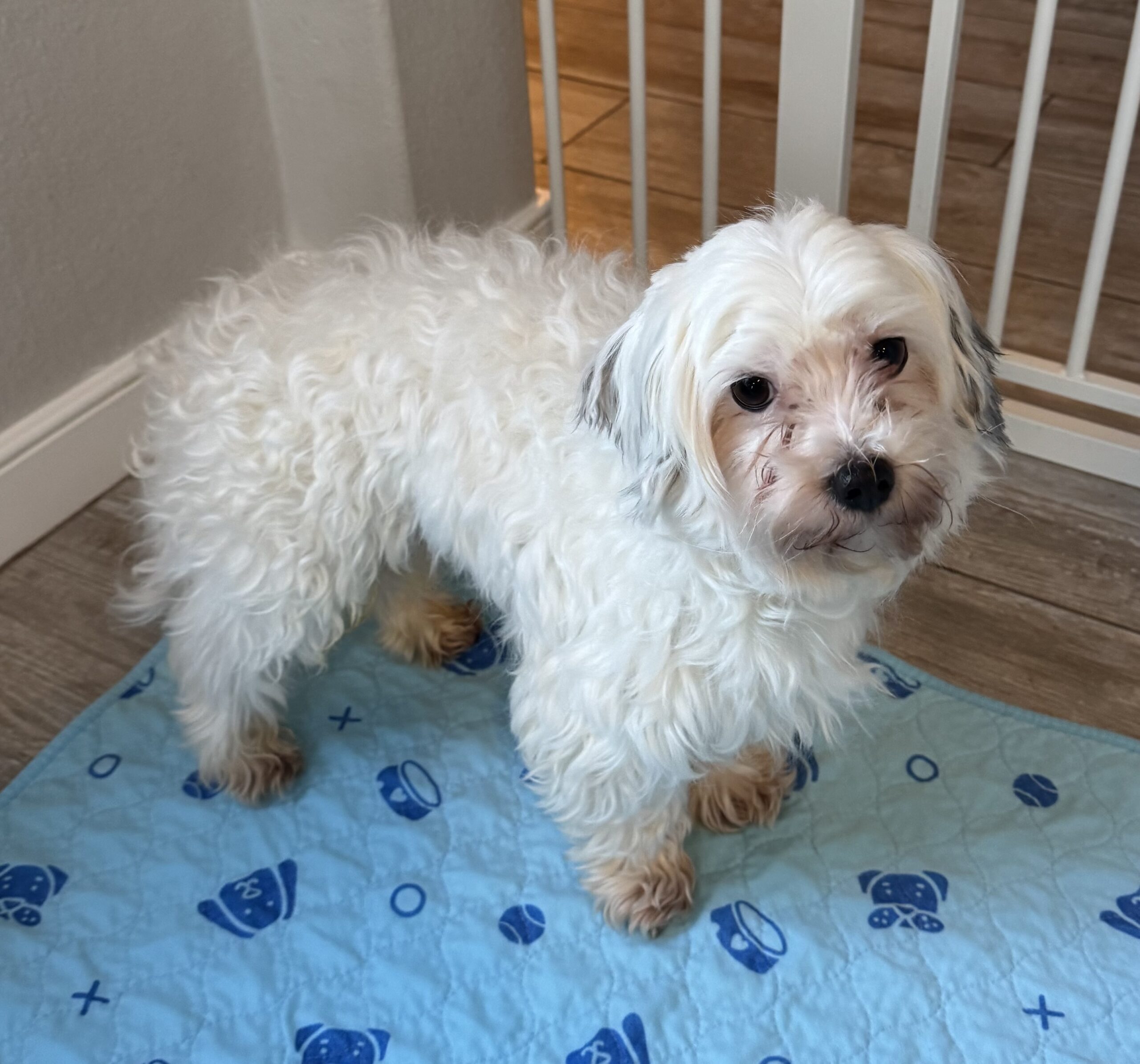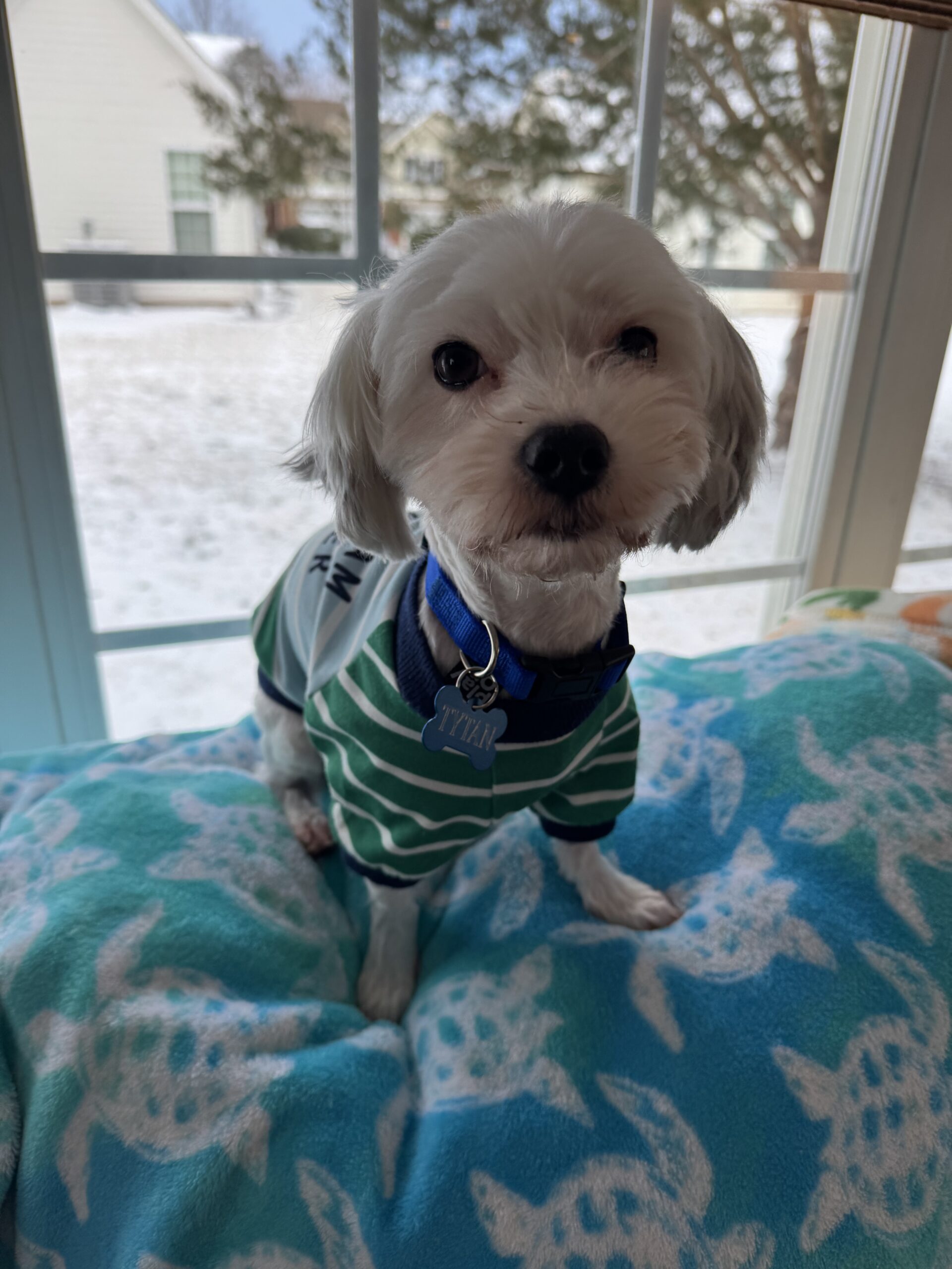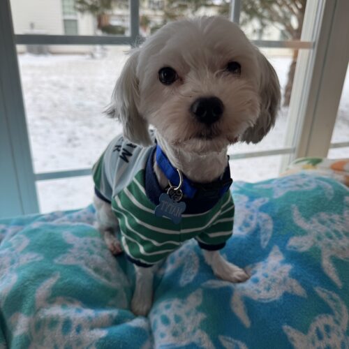 Tytan is a Maltese Yorkie mix. He is 3 and a half years old and weighs about 8.5 pounds. He comes to us as an owner surrendered dog. His owner is moving and cannot afford to take him.